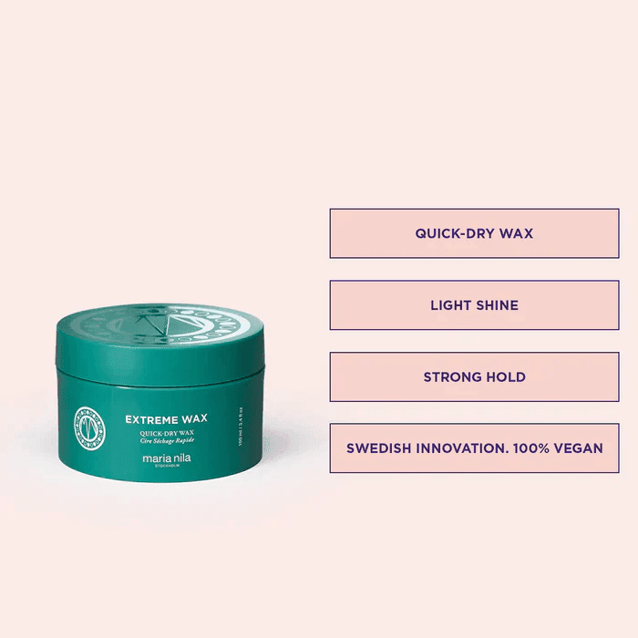 Op zoek naar een krachtige wax die kort haar langdurig in model houdt zonder stijf te worden? Maria Nila Extreme Wax is een sneldrogende stylingwax met een holdfactor van 5/5 en een subtiele glans, ideaal voor sterke looks die de hele dag blijven zitten.